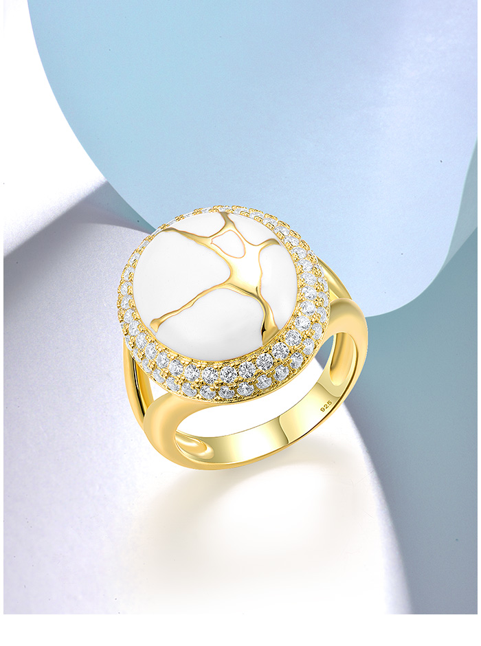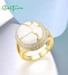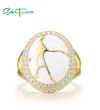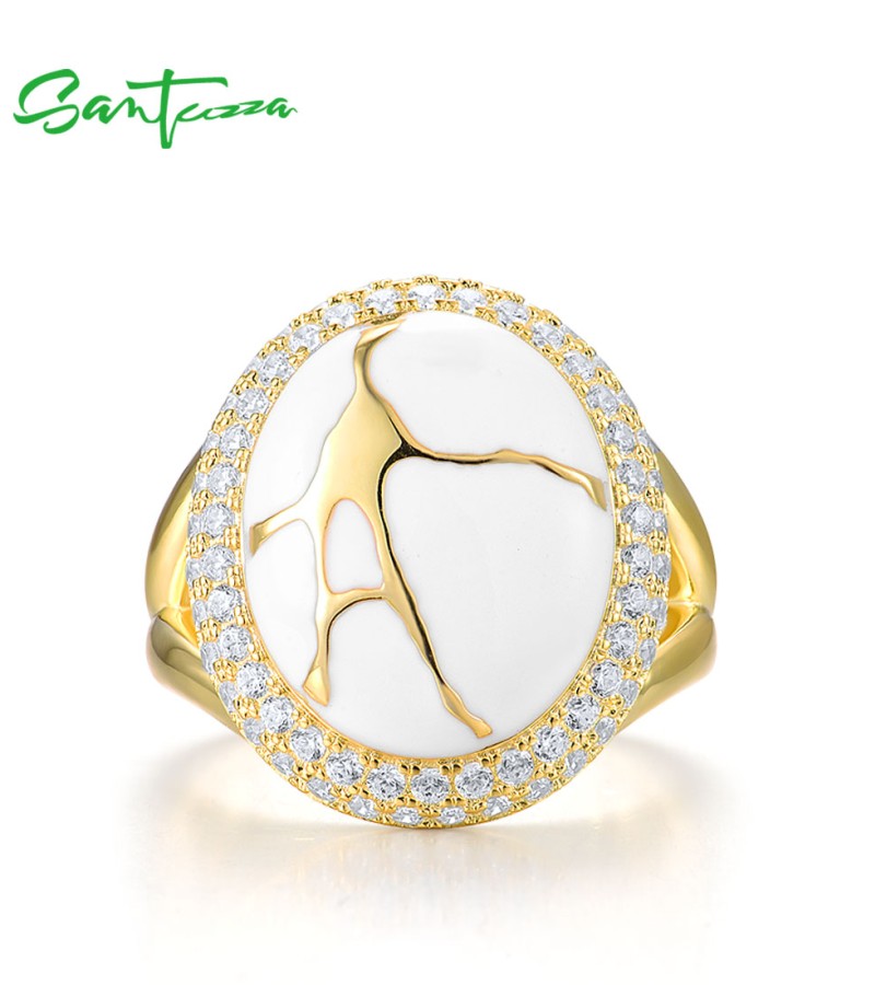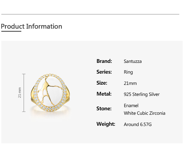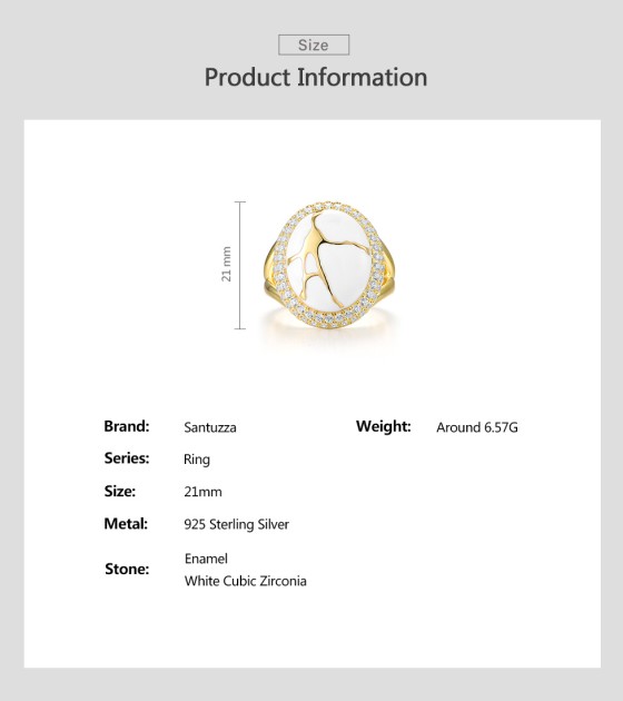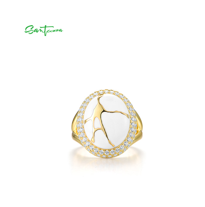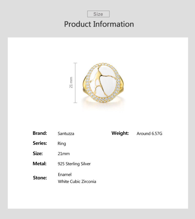 SANTUZZA 925 Sterling Silver Oriental Ring White Cubic Zirconia Enamel Fine Jewelry