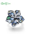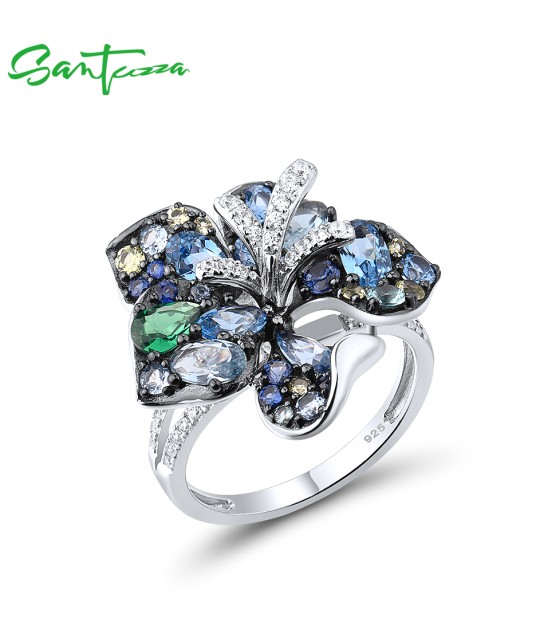 SANTUZZA Silver Ring 925 Sterling Silver Multi Gems Blue Lily Flower Ring Jewelry