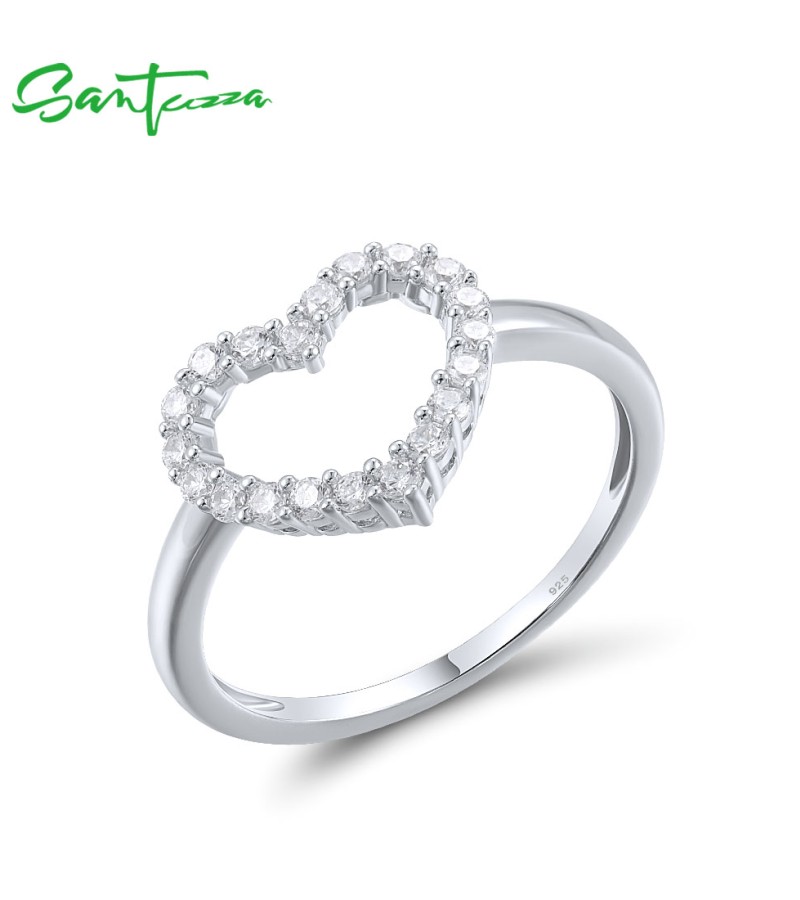 SANTUZZA 925 Sterling Silver Rings White Cubic Zirconia Heart Shaped Minimalist Sweet Fine Jewelry