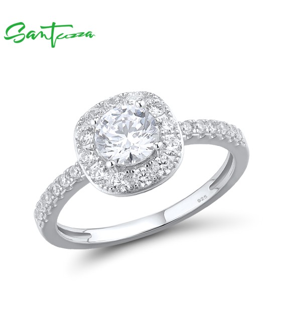 SANTUZZA 925 Sterling Silver Rings White Cubic Zirconia Fine Jewelry